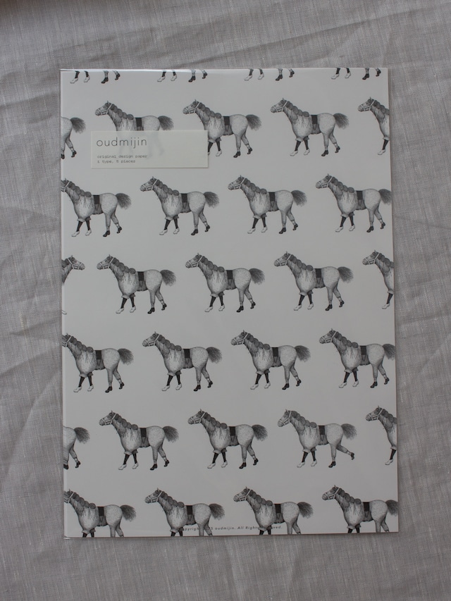 oudmijinさんのA4サイズのデザインペーパー。それぞれ紙質にもこだわったペーパーです。 お手紙やデコ、ラッピングなど使い道色々。 2026年の干支「午 (うま)」にちなんだモチーフのタップダンス・ホース。軽快な足音が聴こえてきそうな4足の足、踊るたび揺れそうな立髪のリボン。細かな描写に心も踊る馬です! 同柄5枚入り。 サイズ 横210mm×縦297mm