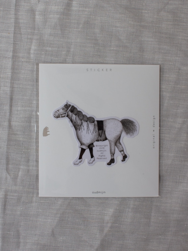 oudmijinさんの人気のモチーフが大きなステッカーに。 耐水性もあるのでお気に入りのものに貼ってオリジナルのカスタマイズを楽しめます。 2026年の干支「午 (うま)」にちなんだモチーフのタップダンス・ホース。軽快な足音が聴こえてきそうな4足の足、踊るたび揺れそうな立髪のリボン。細かな描写に心も踊る馬です! サイズ(台紙) 約110mm×110mm ーーーーーーーーーー Profile oudmijin (オールド•ミジン) 線描画を活かした品々を主に製作しています。 ART DIRECTION / DRAWING / GRAPHICDESIGN ーーーーーーーーーー