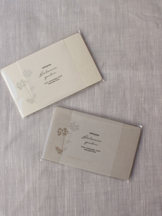 繊細なボタニカルイラストのミニカード。 メッセージカードとしてギフトに添えたり連絡先を書いて名刺代わりにも。 サイズ:W95×H55mm 仕様 : 同柄 5枚入り