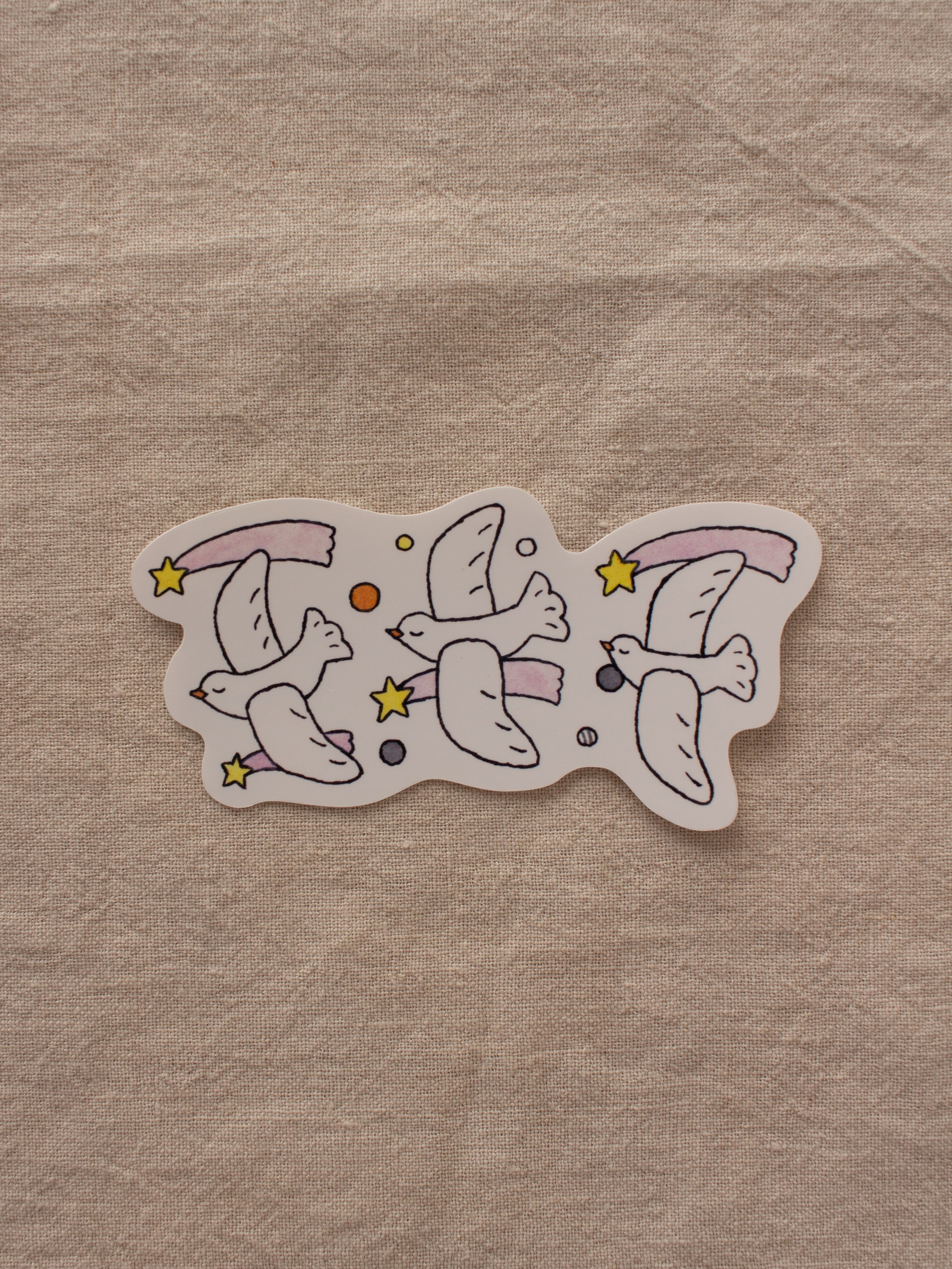 おざわさよこさんの作品「あんしんして、おやすみ」より、いくつかのモチーフがステッカーに。耐水性ですのでお気に入りの持ち物にたくさん貼っていただけたら。