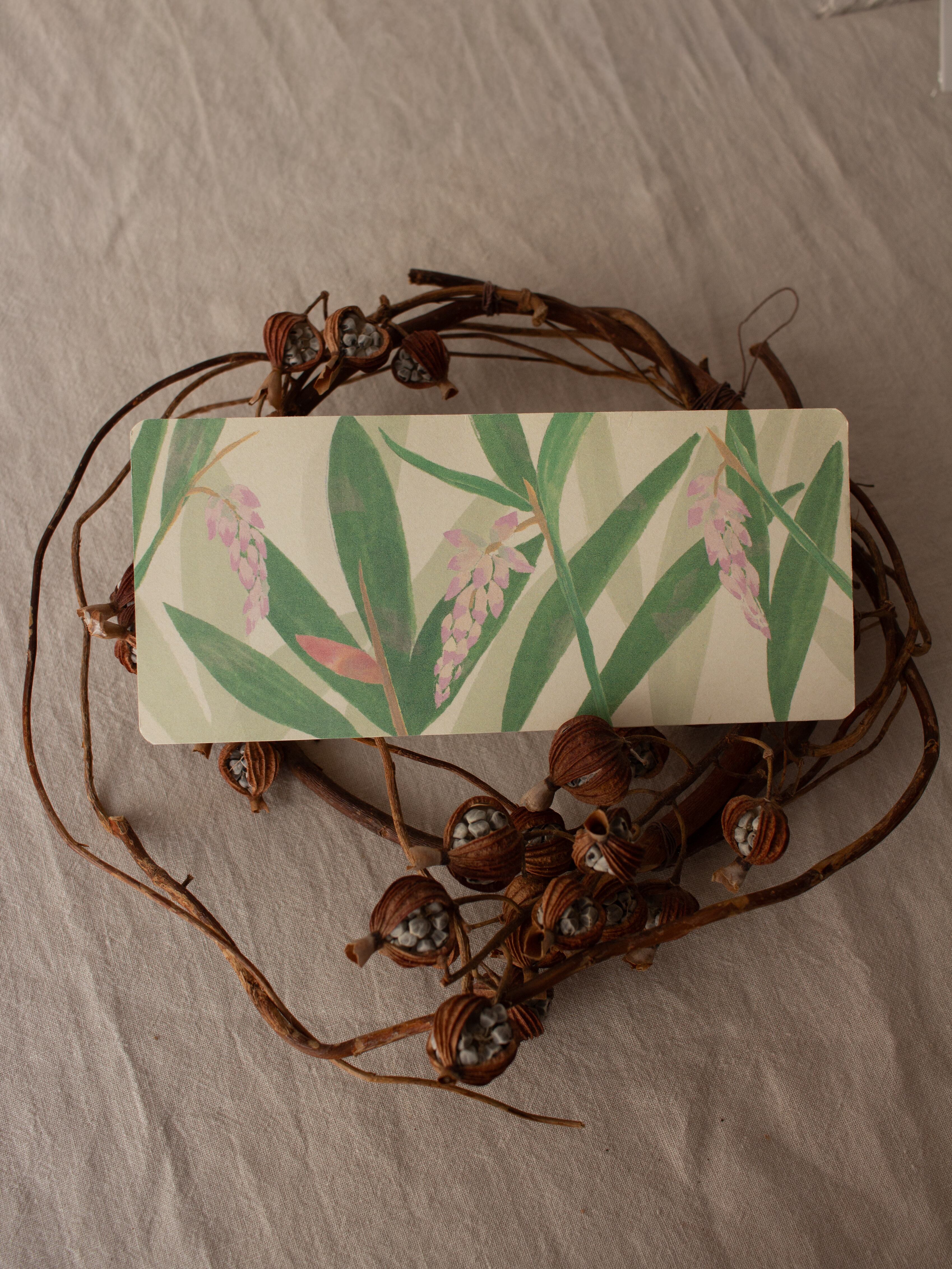 月桃は沖縄に自生する、沖縄の人々の暮らしに寄り添う植物。特別に大森さんがカードに描いていただきました