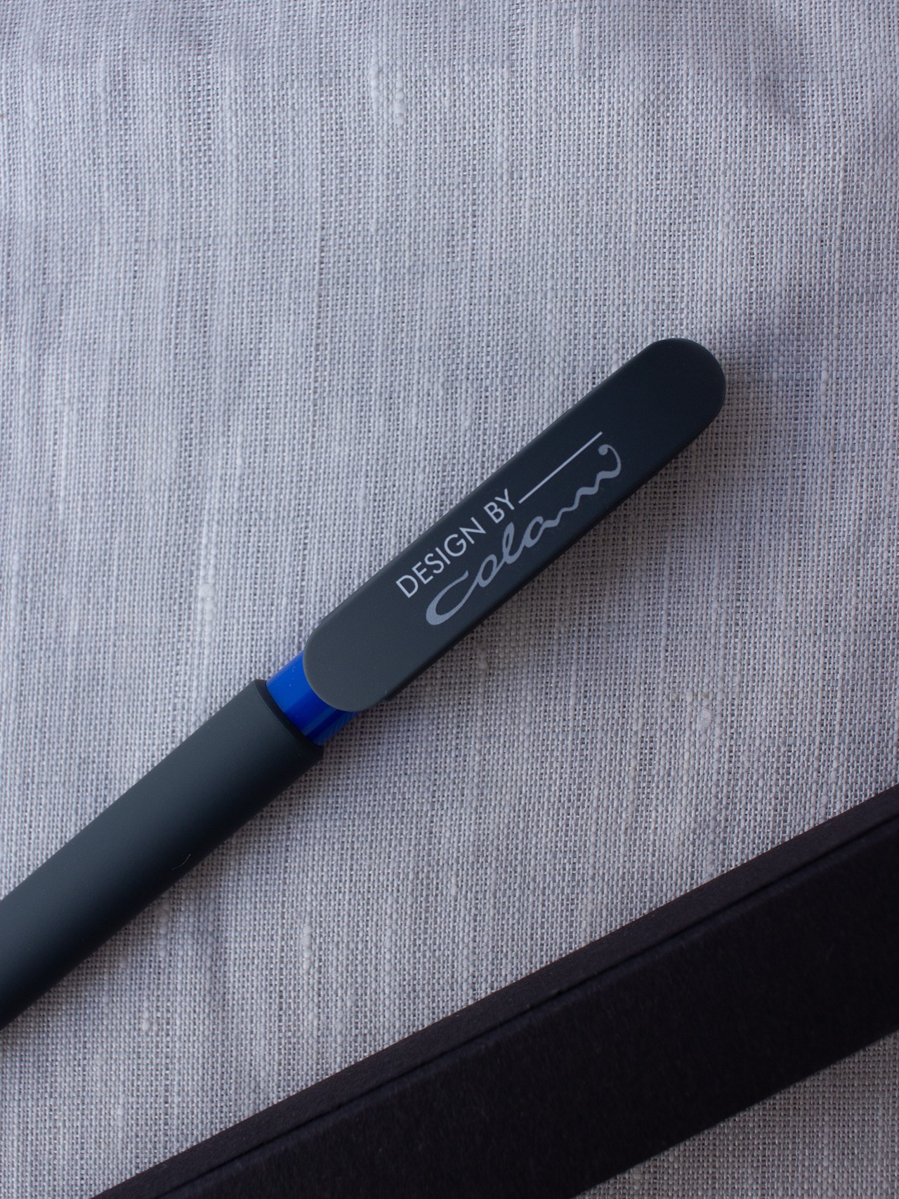この『コラーニペン』にも彼のデザイン哲学がしっかり宿っています。クリップ部はしなやかなアーチを描き、ペン先までなだらかに続くボディラインは自然と手にフィットして心地よい書き味をもたらします。