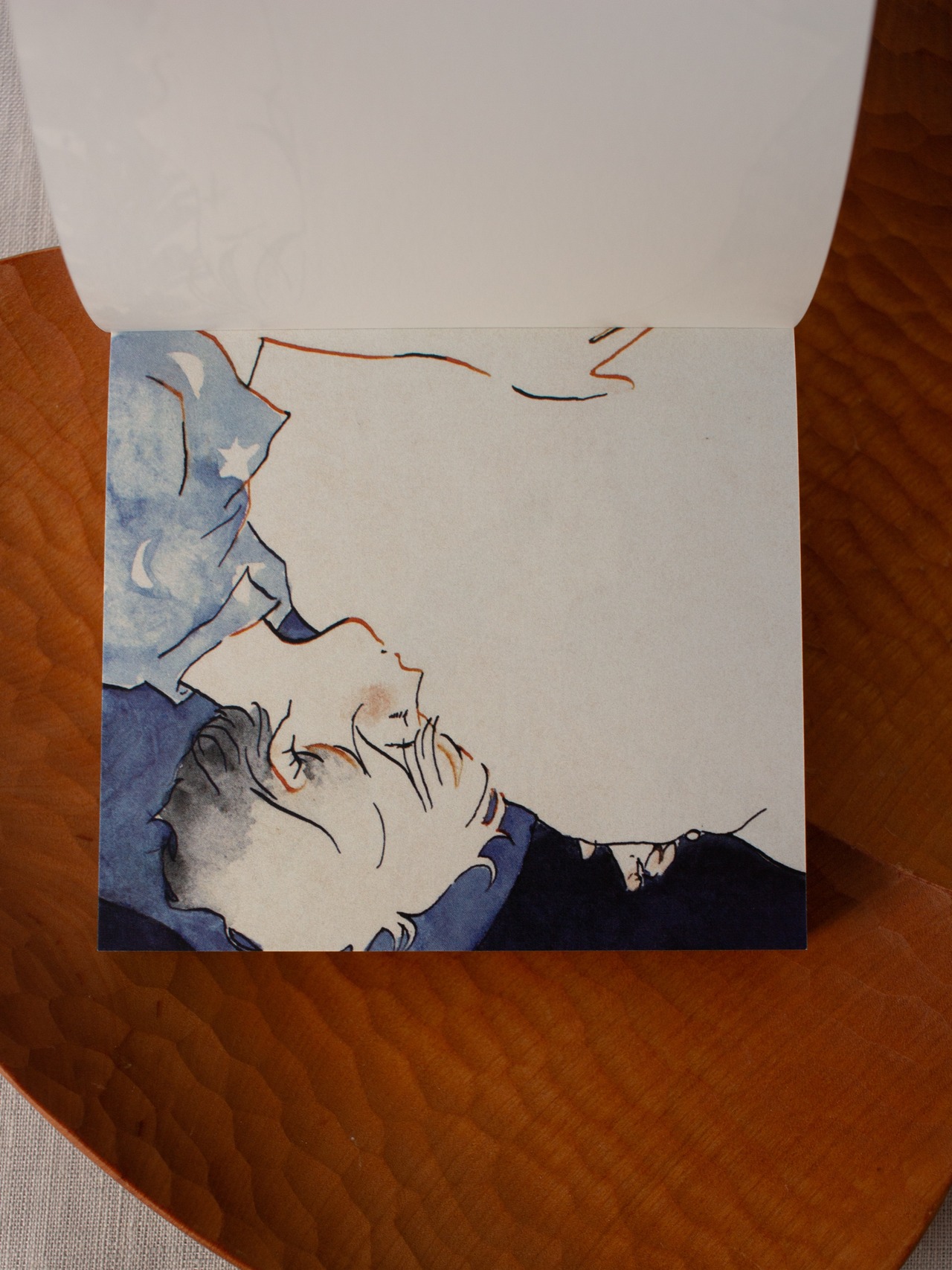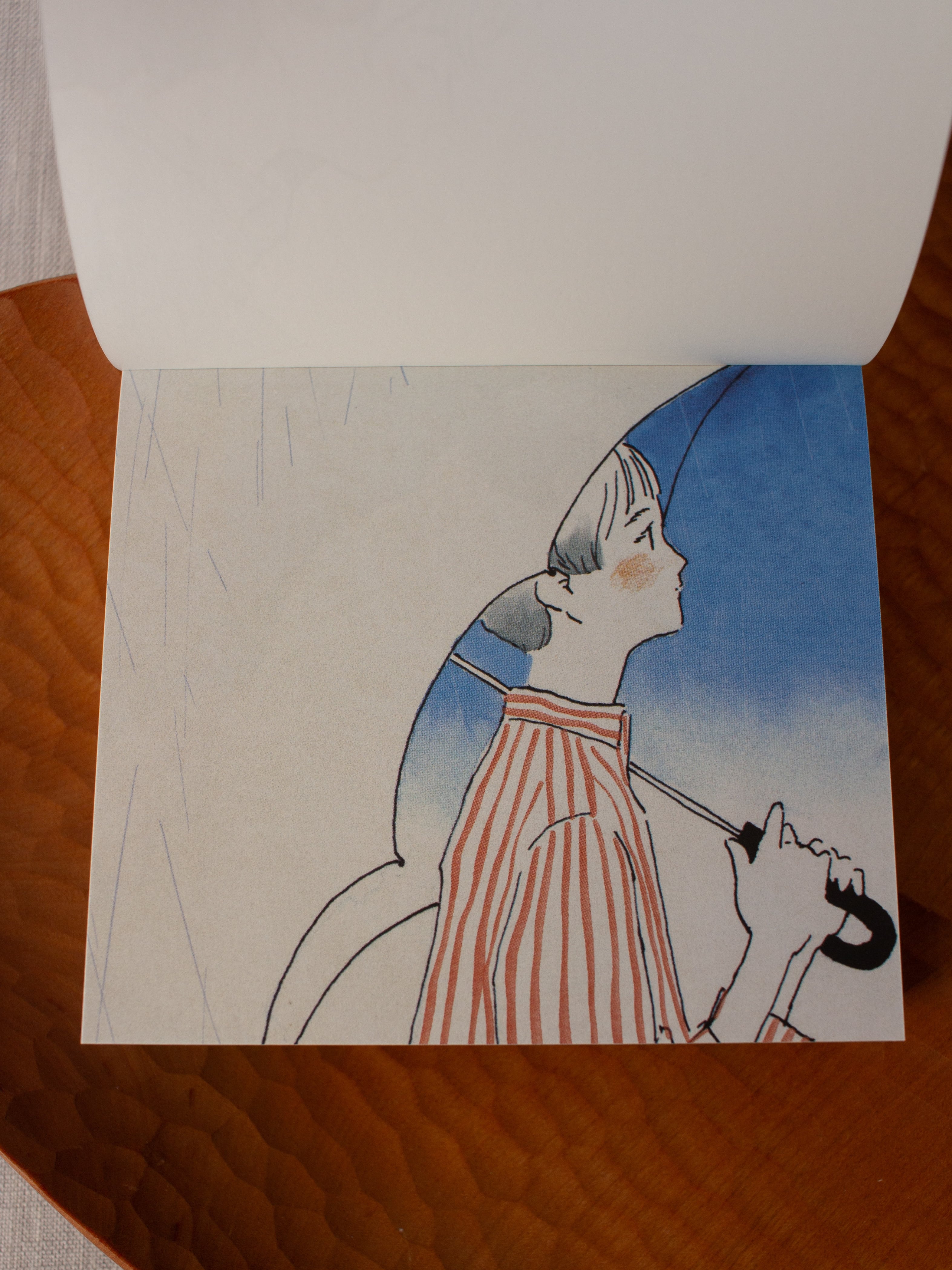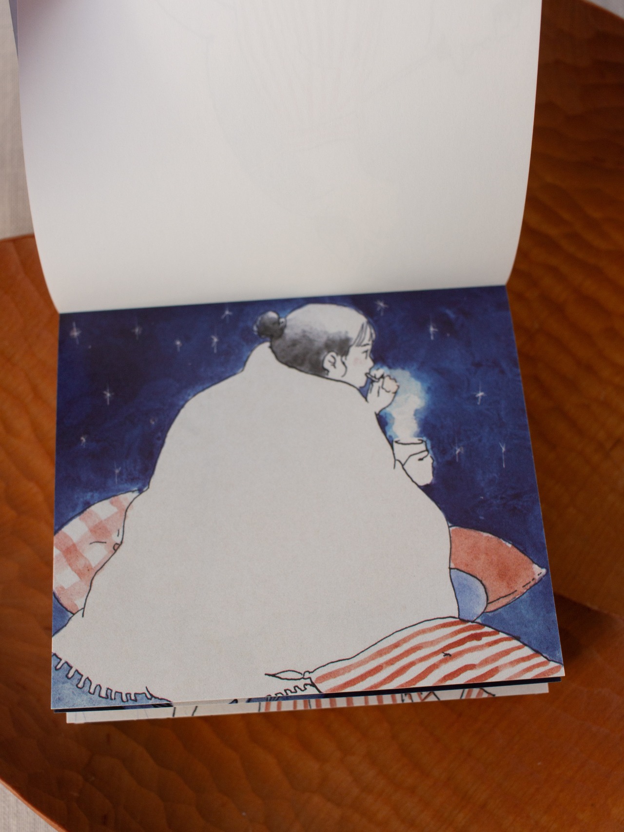 じわっとにじむ青色や赤色を使って、暮らしの中のいろんなシーンが描かれています。