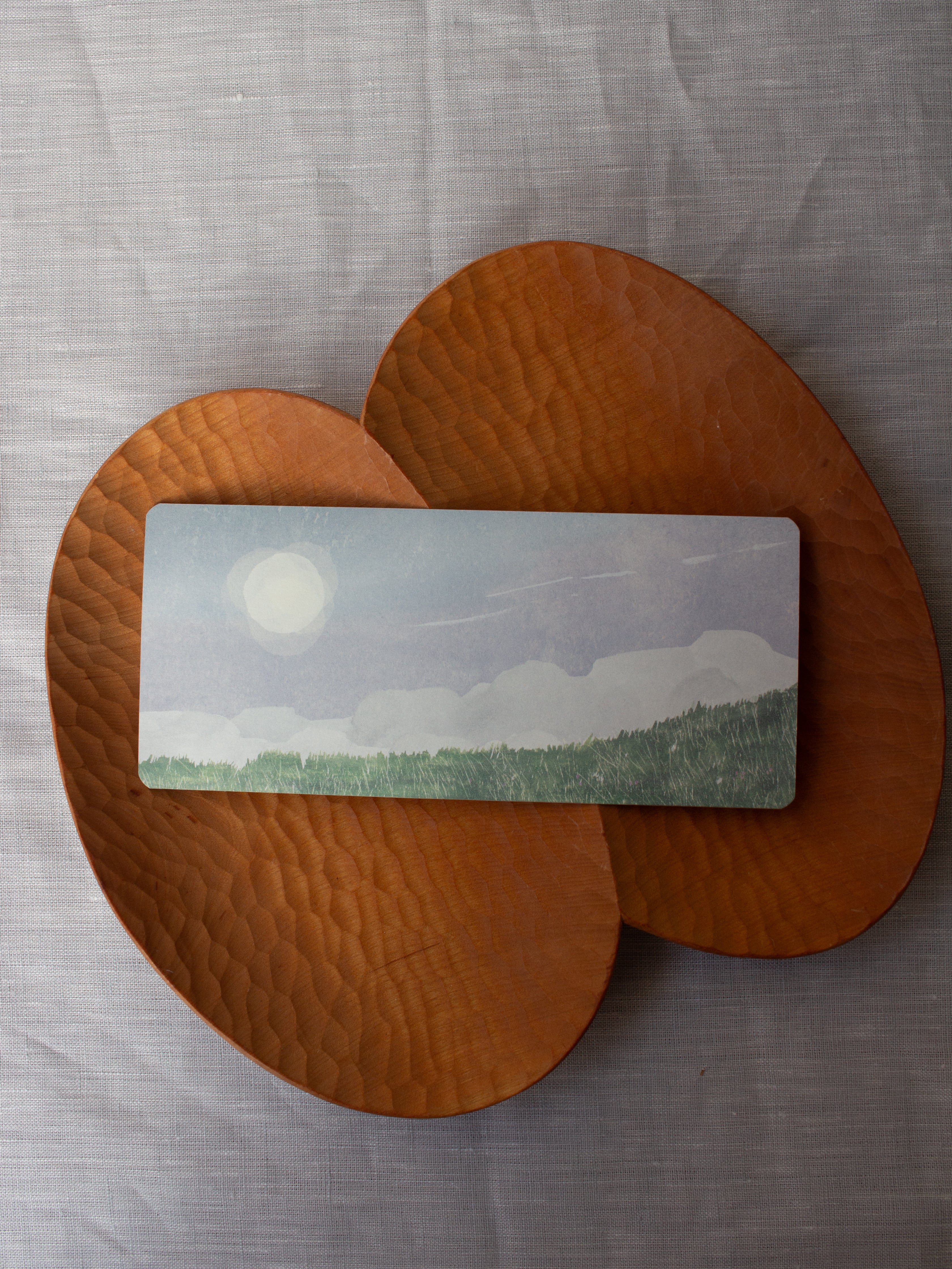 1 枚づつ紙の帯に包まれた、大森木綿子さんのオリジナルデザインのカード。