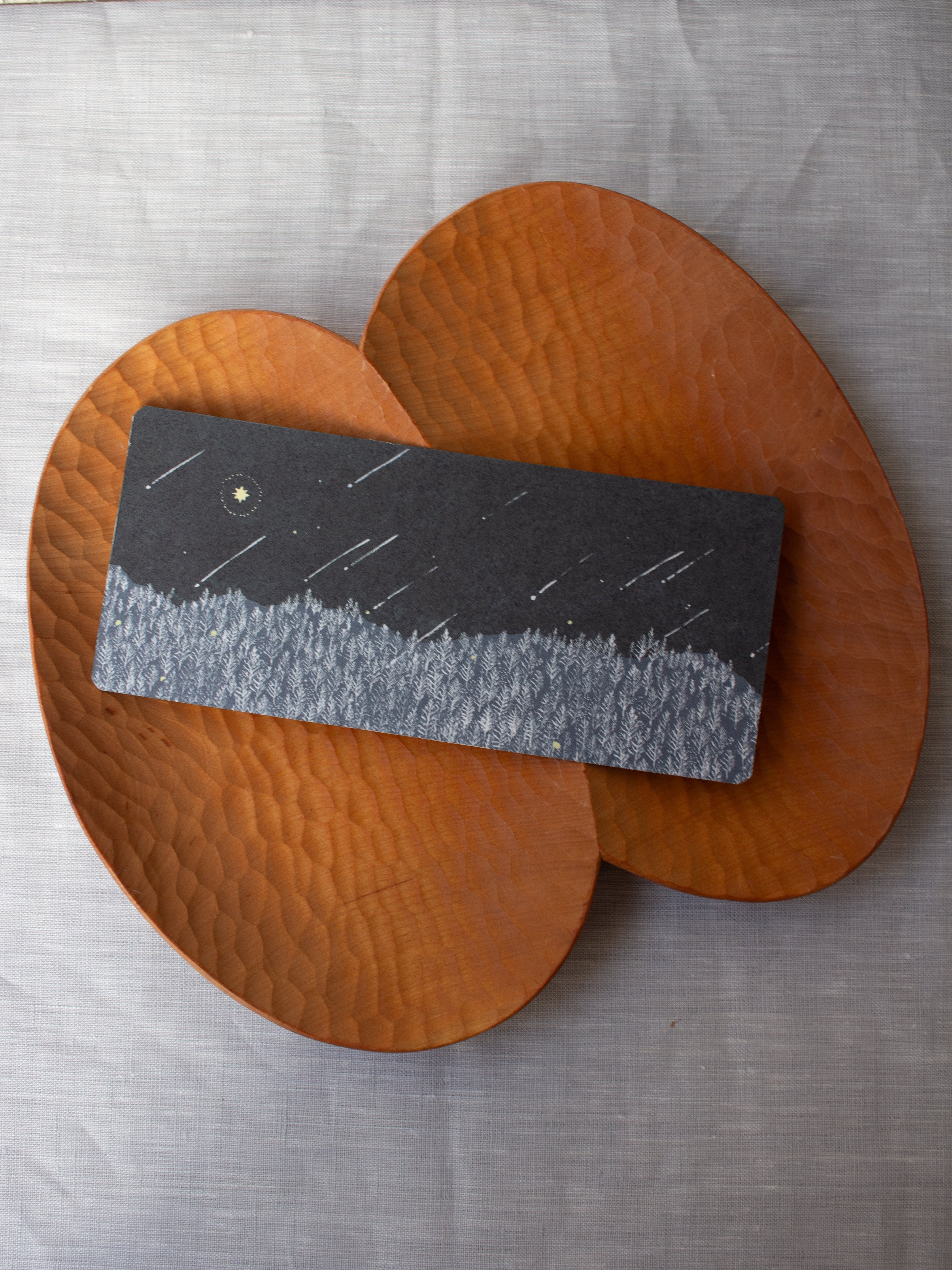 1 枚づつ紙の帯に包まれた、大森木綿子さんのオリジナルデザインのカード。