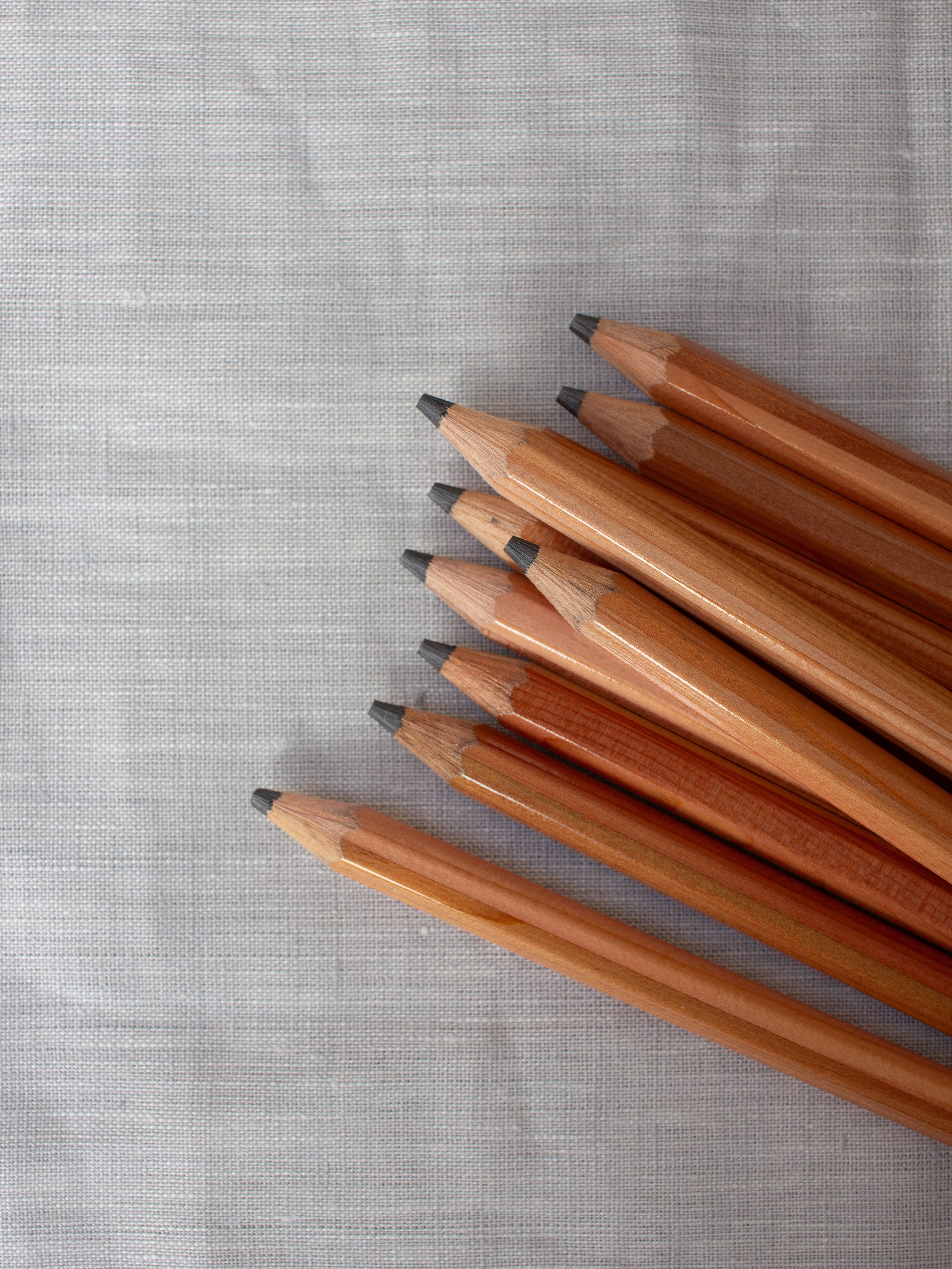 やわらかい芯と太い木軸による、なめらかな書き心地は月光荘だけのものです。