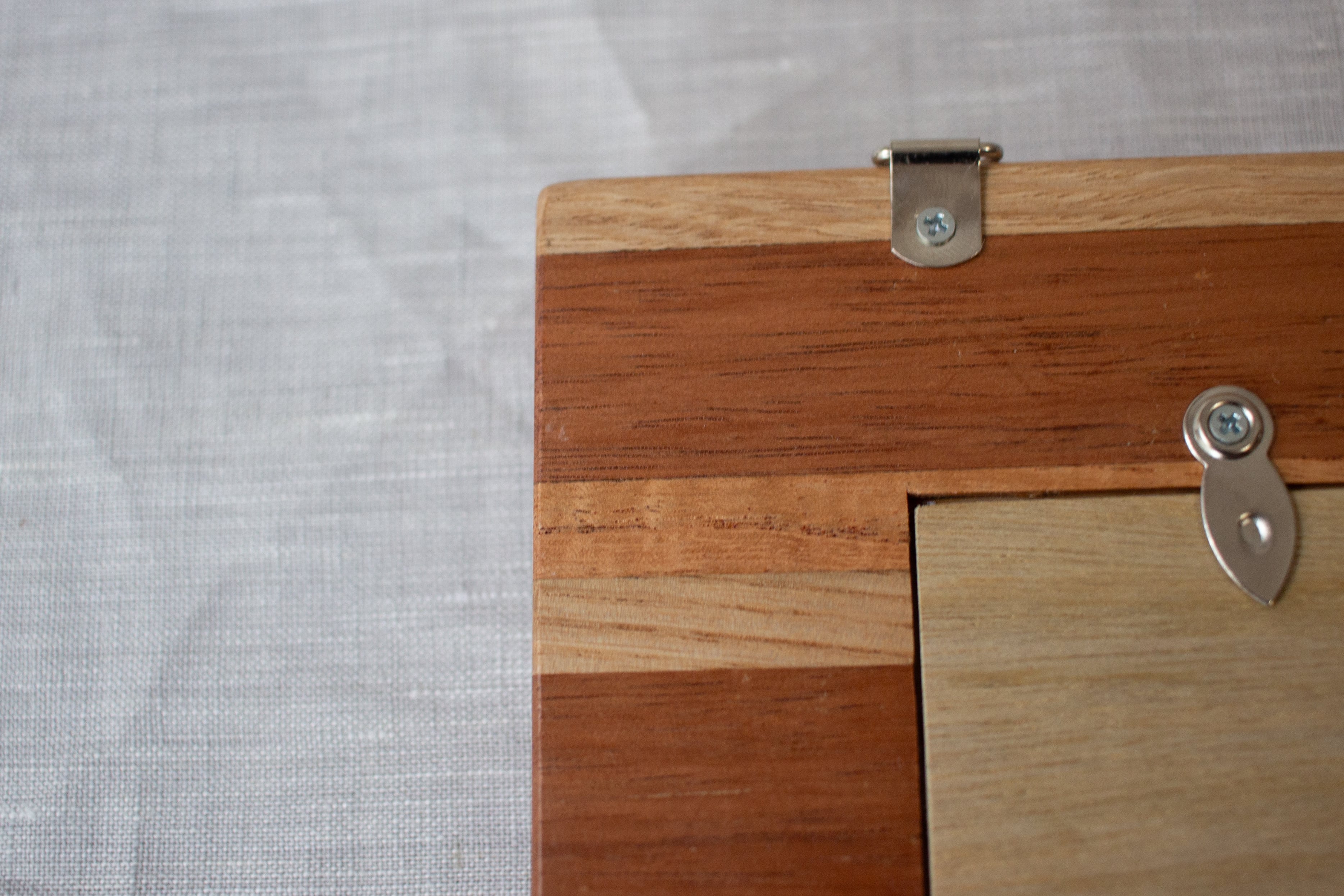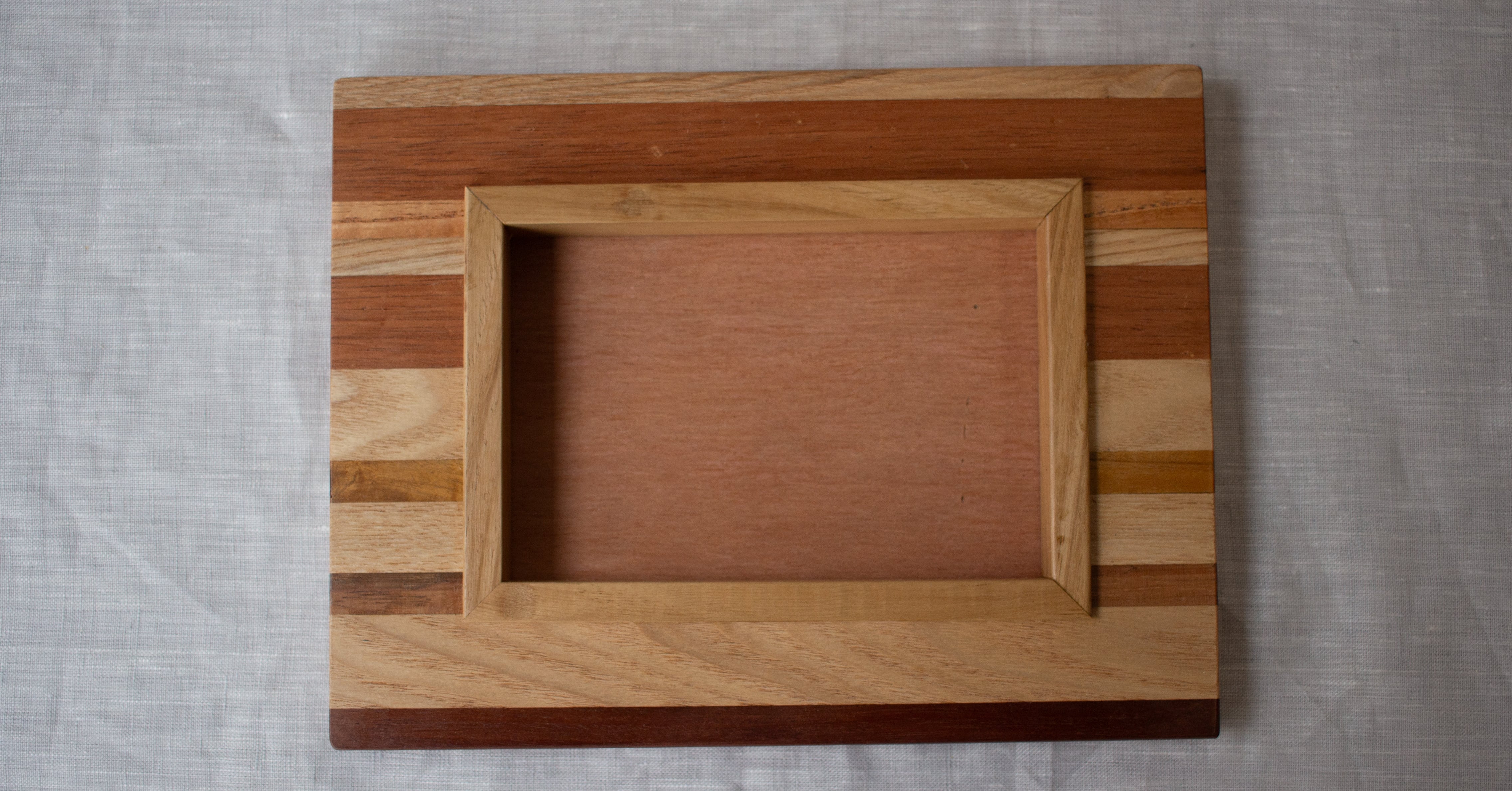 沖縄の四つの木工房のチーム「家具家」さんに作っていただいた額の展示販売会『額の市』よりテツモクさんの寄せ木の技術を使った贅沢なフレームです。