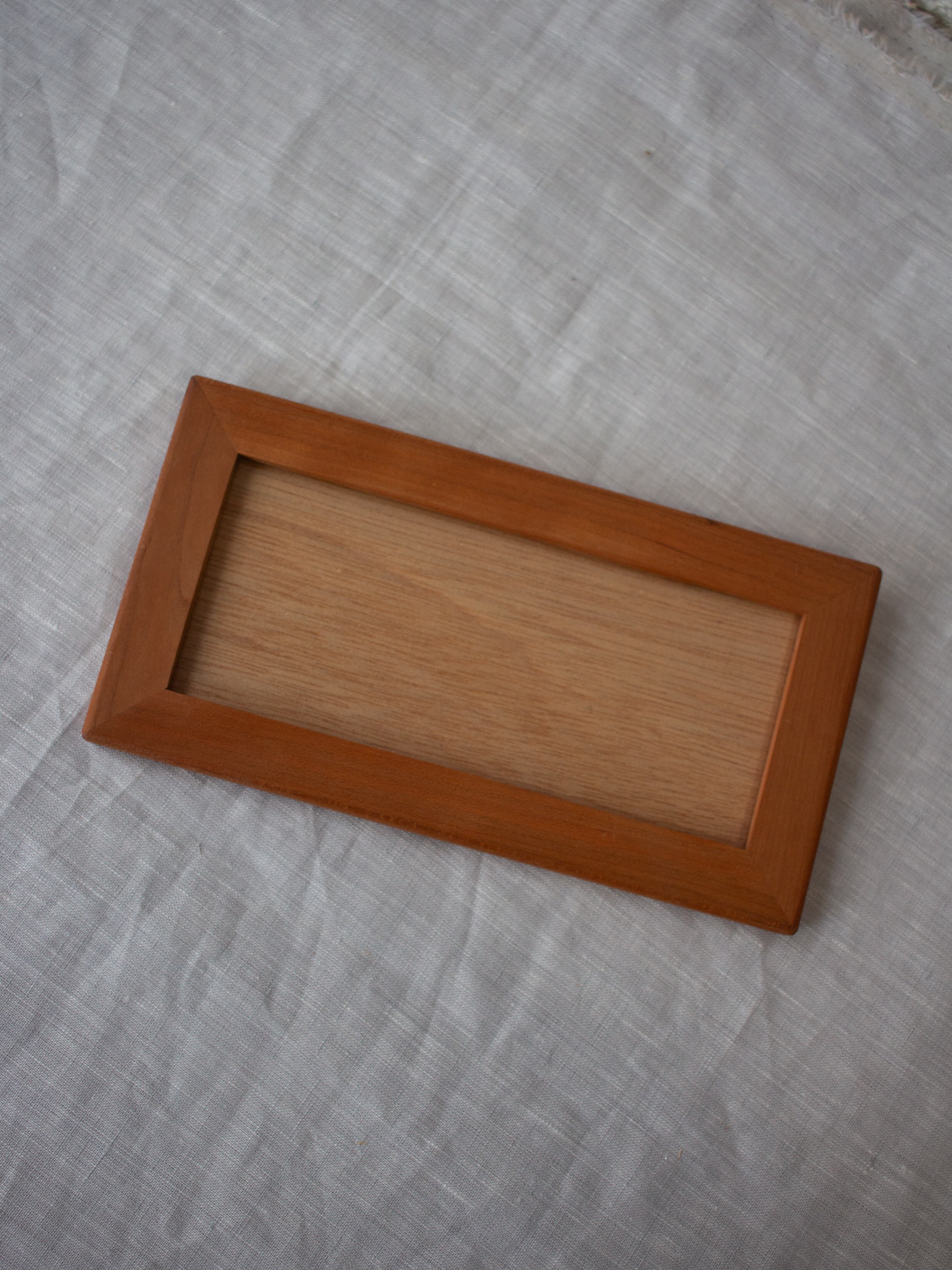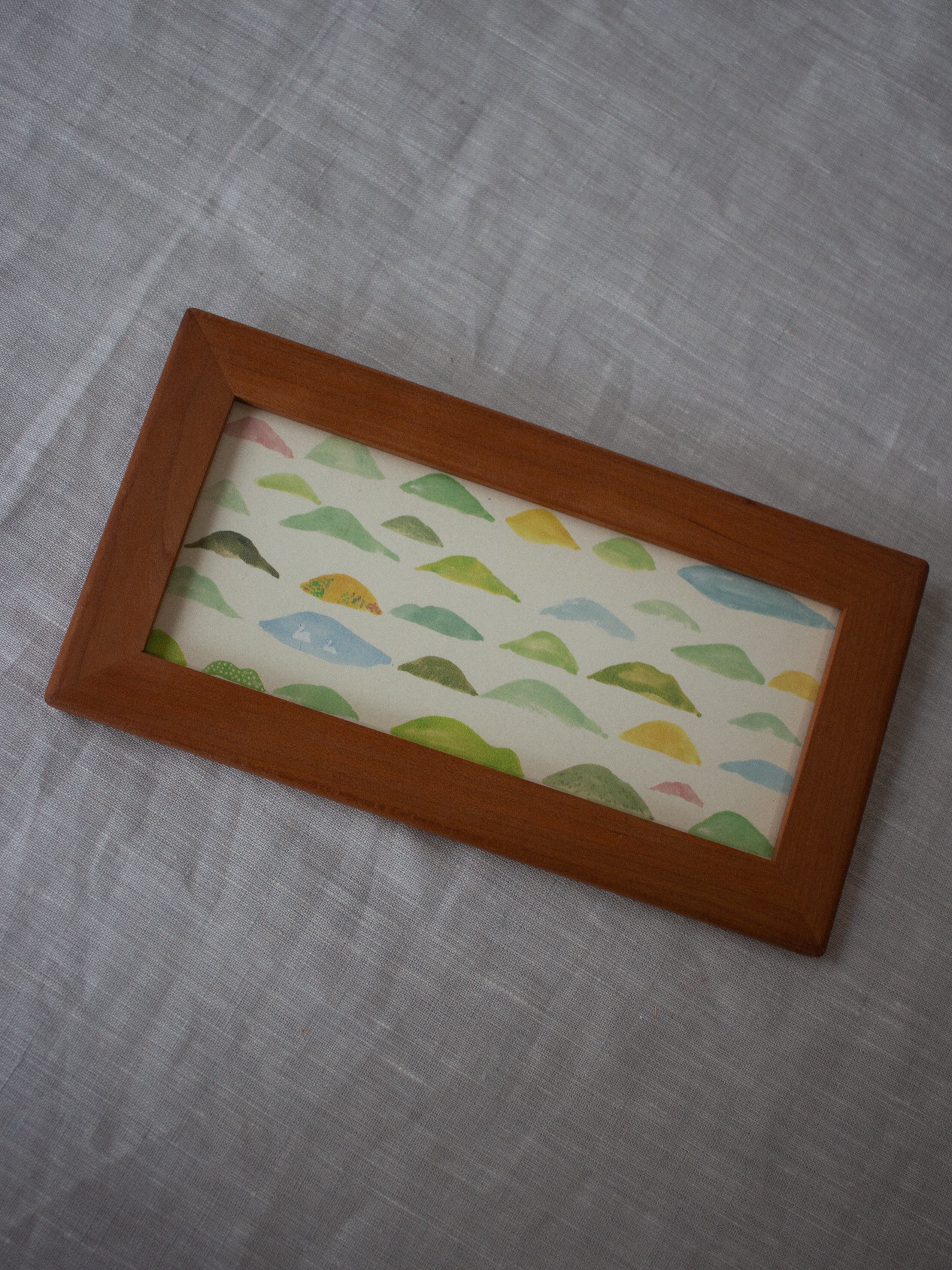 沖縄の四つの木工房のチーム「家具家」さんに作っていただいた額の展示販売会『額の市』より新福木工さんのチェリーの無垢材を使ったシンプルな横長額。木目の美しさを感じられる額です。
