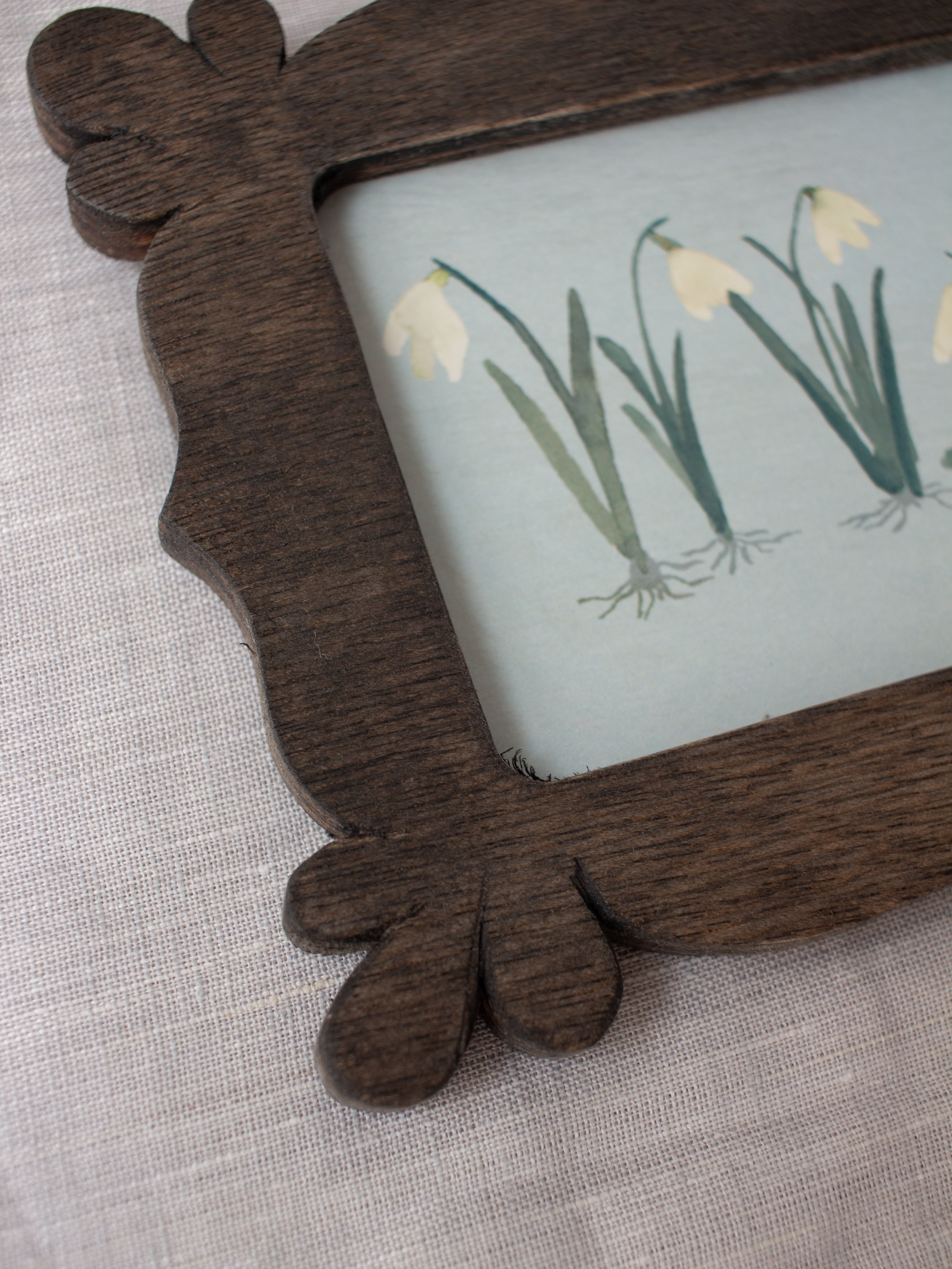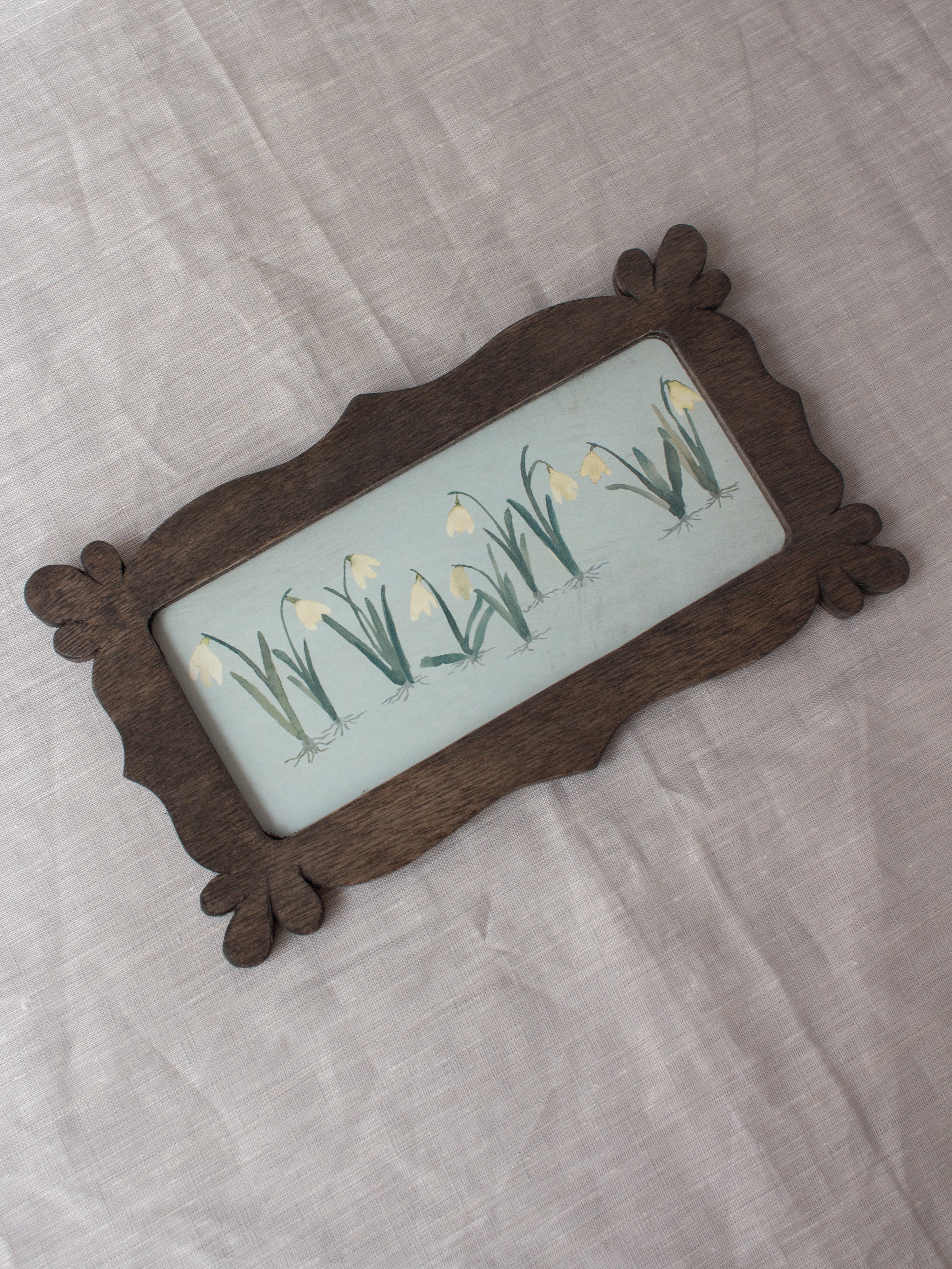 沖縄の四つの木工房のチーム「家具家」さんに作っていただいた額の展示販売会『額の市』より木工ヤマウチさんの合板で作った横長額。合板のビスケットの様な層と花びらの様な形が紙好きのみなさんにも愛されそうです。