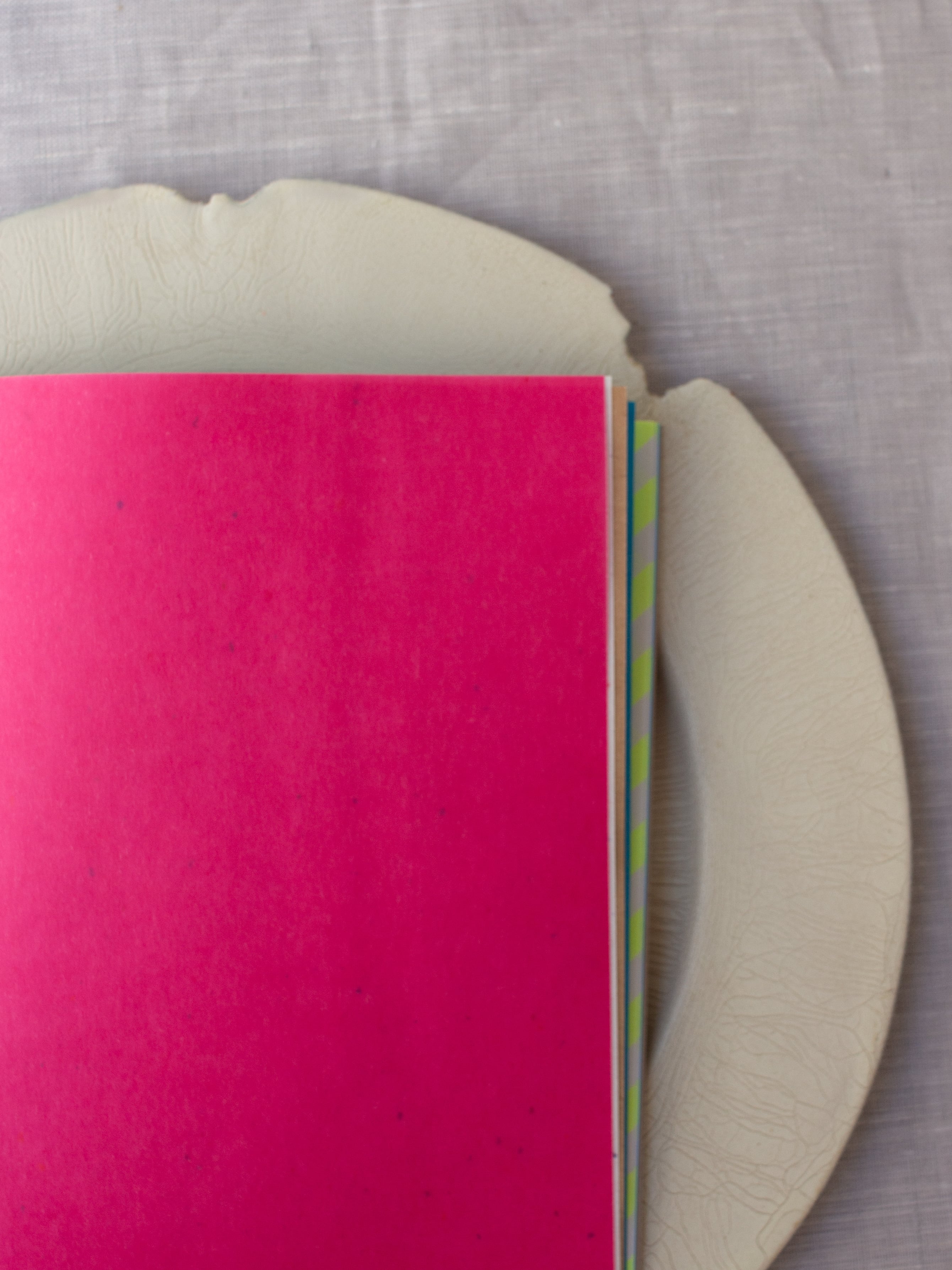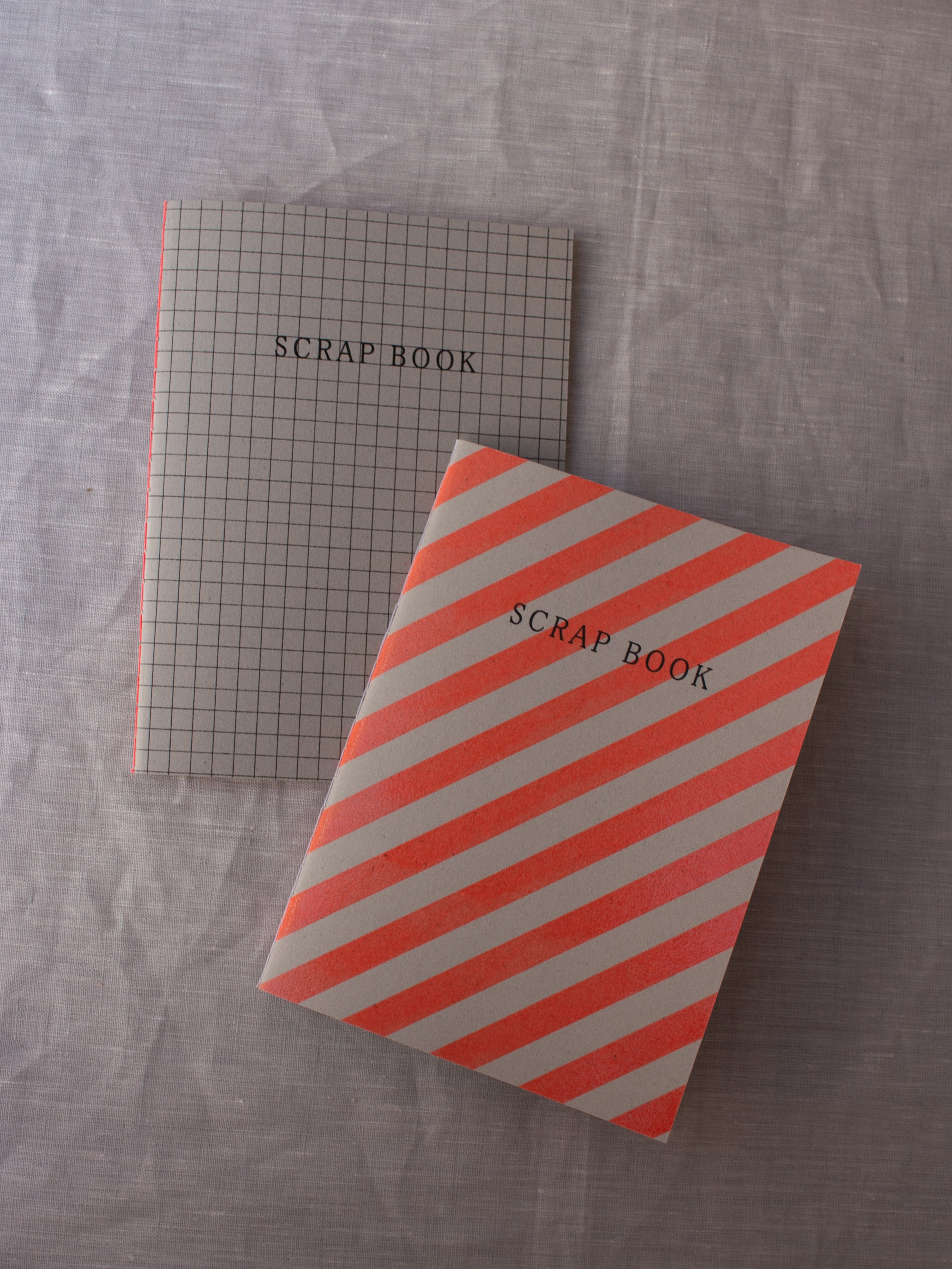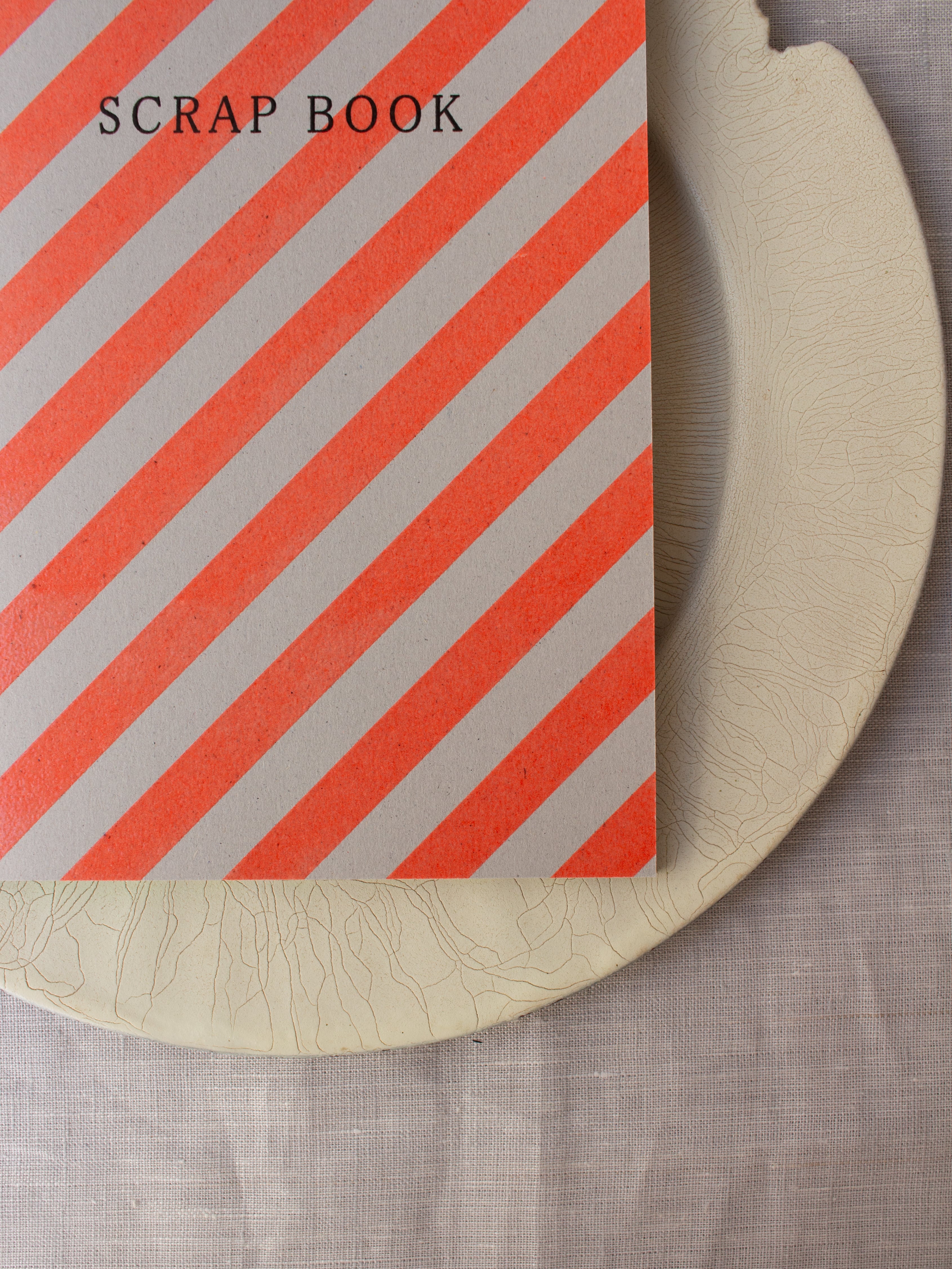 素材の異なる様々な紙を綴じ込んだA5サイズより少し小さなスクラップブック。第二弾は、元気な色のストライプ柄が表紙です。パリパリした紙、ざらざらした紙、透明な紙、無地に罫線など、さまざまな紙を綴じた書くのが楽しくなるノートです。ジャーナリングやコラージュにも活躍しそうです。