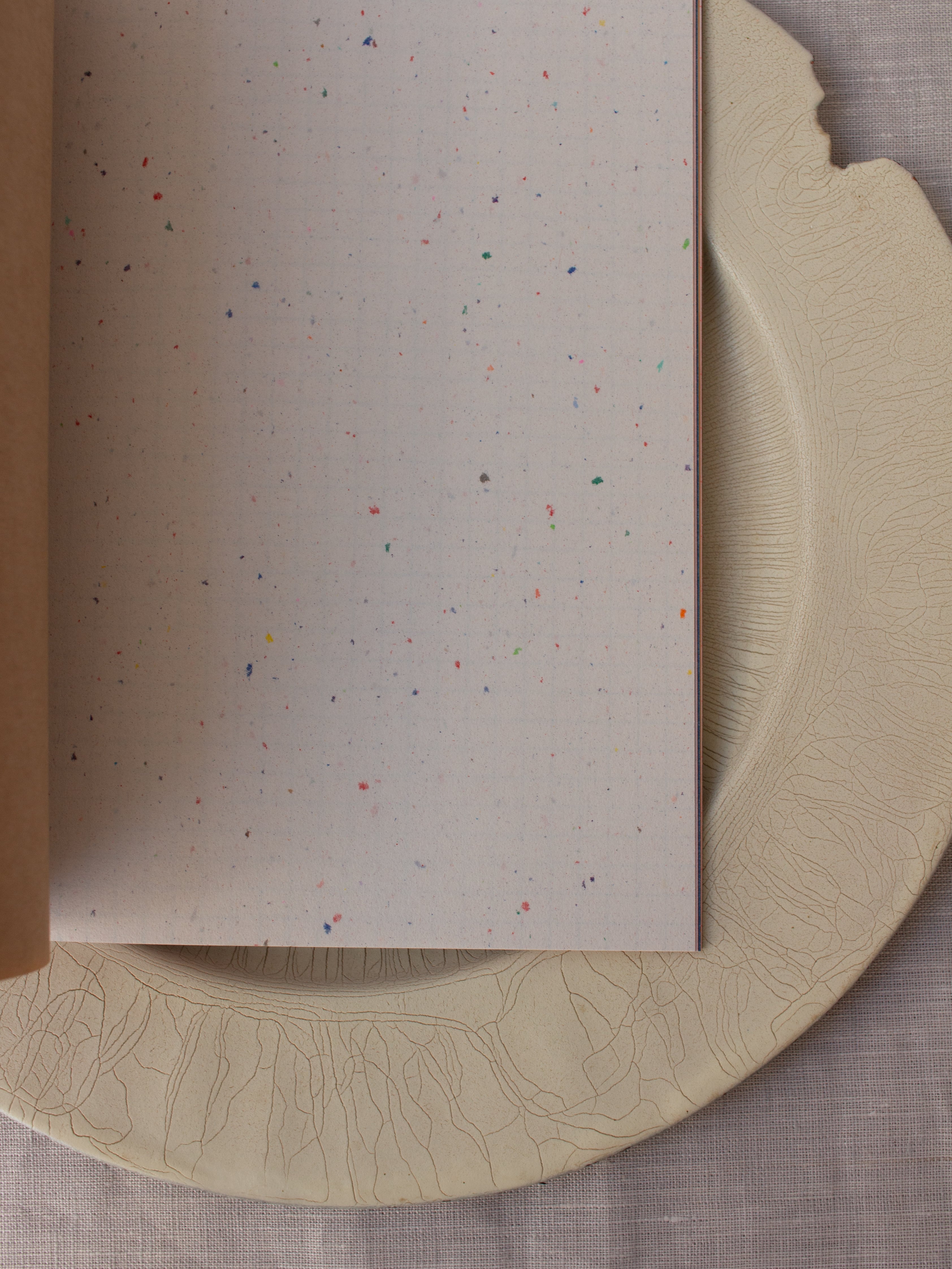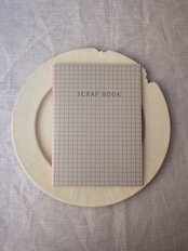 素材の異なる様々な紙を綴じ込んだA5サイズより少し小さなスクラップブック。パリパリした紙、ざらざらした紙、透明な紙、無地に方眼罫など、さまざまな紙を綴じた書くのが楽しくなるノートです。ジャーナリングやコラージュにも活躍しそうです。