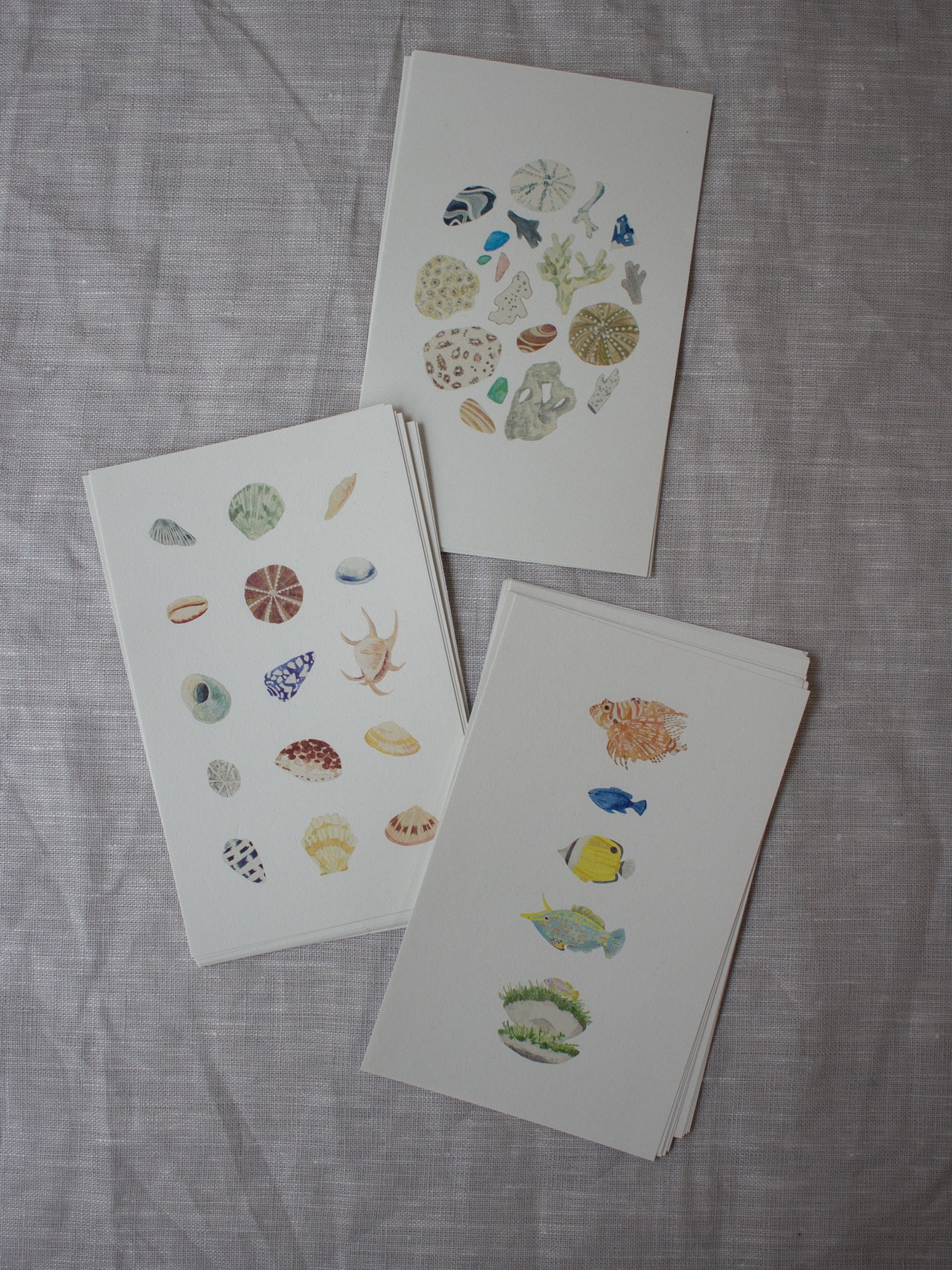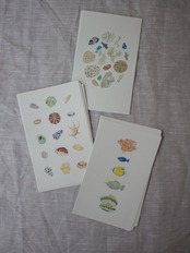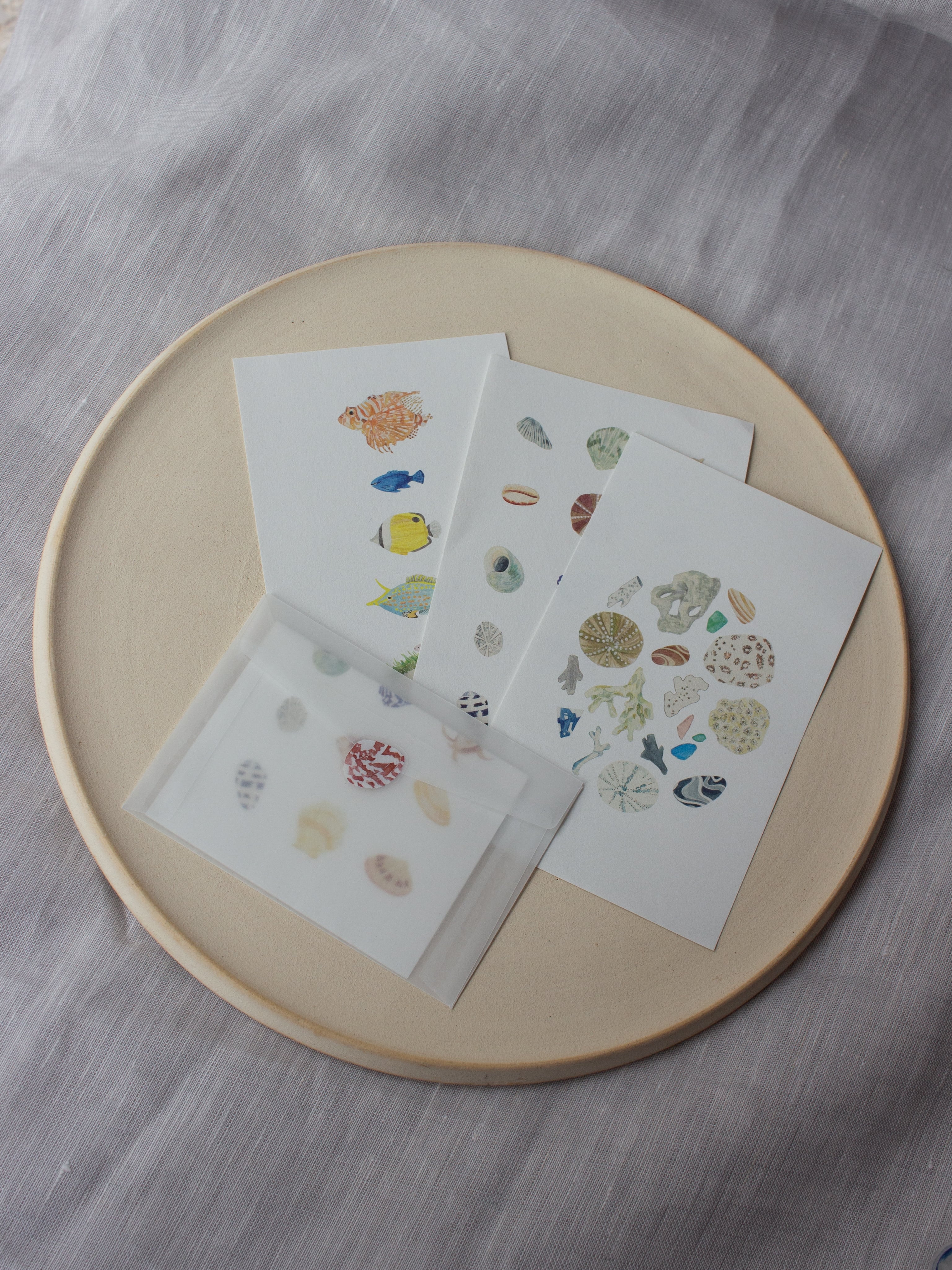 海辺の珊瑚や貝、魚のモチーフをミニサイズのペーパーに仕立てました。