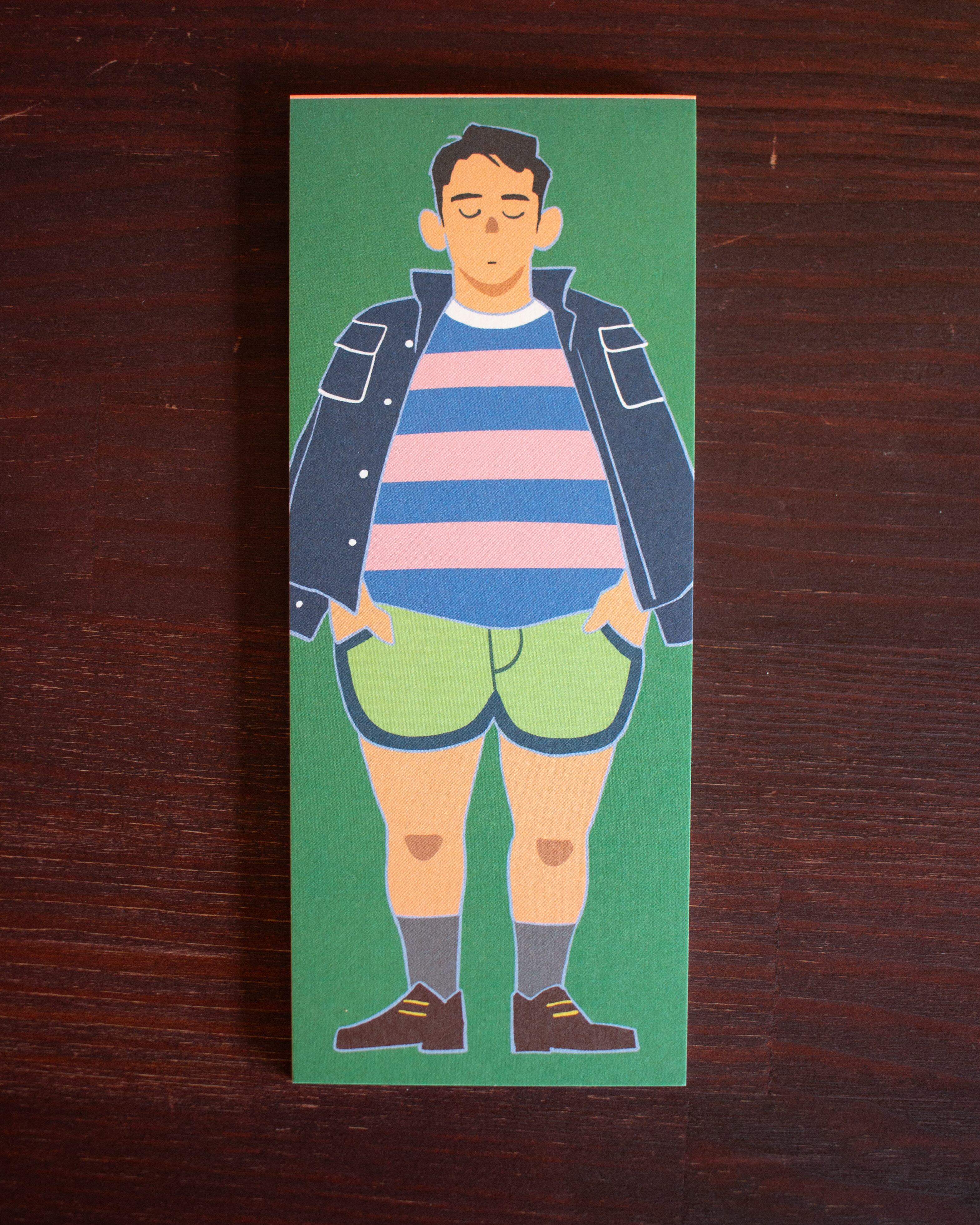 「標本メモパッド」と名付けた3種のメモパッド。それぞれの個性がある3人のメンズたちをあすかむさんに描いて頂き、それぞれのキャラクターに標本名を付けさせて頂いています。カラフルな天糊もチャームポイント。3冊コンプリートしてくれたら嬉しいです。