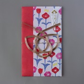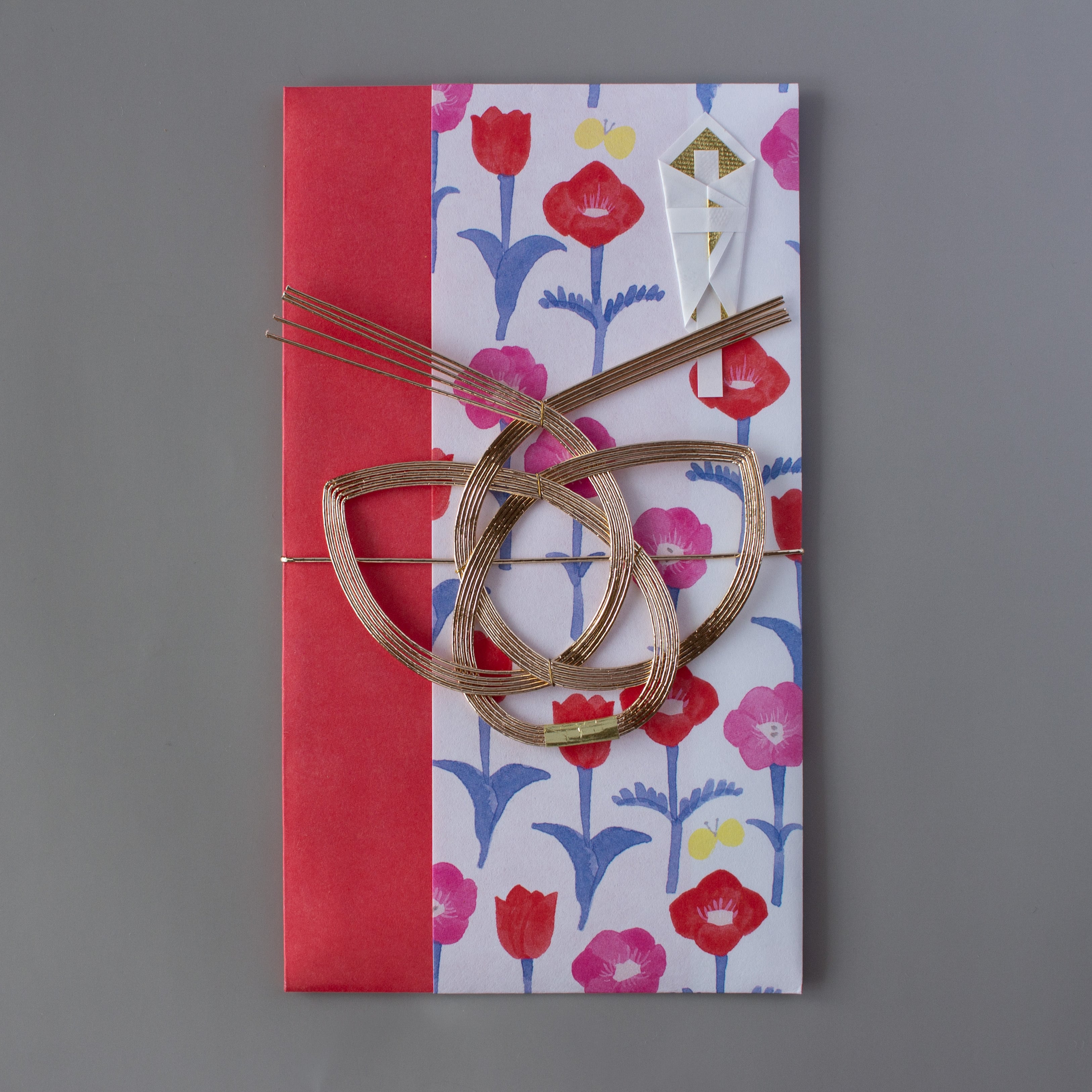 蝶デザインの水引と、あざやかなお花柄が心躍るデザインです。