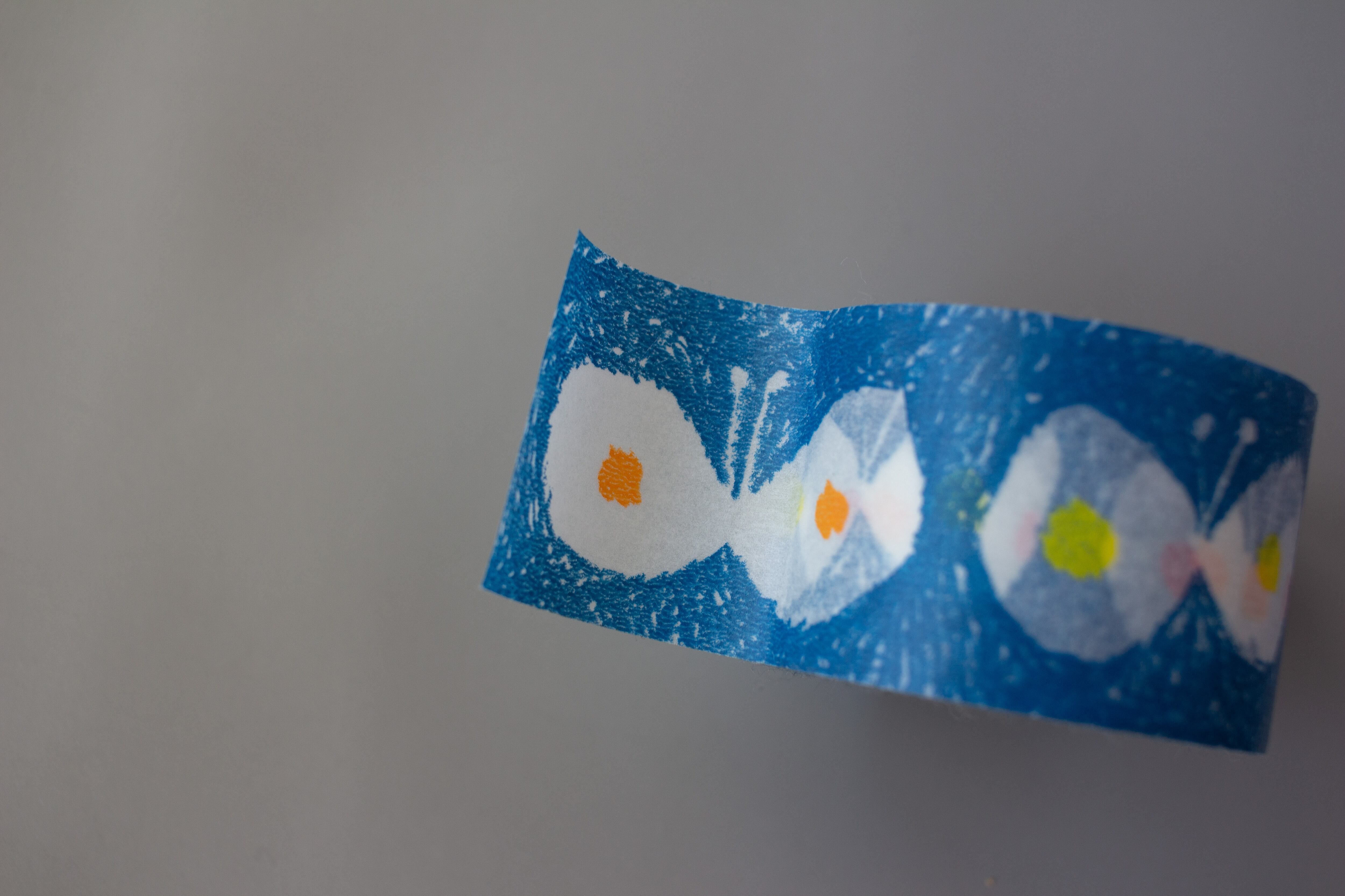 ブルーベースのテープに、色んな羽を持つ蝶達が飛んでいます。