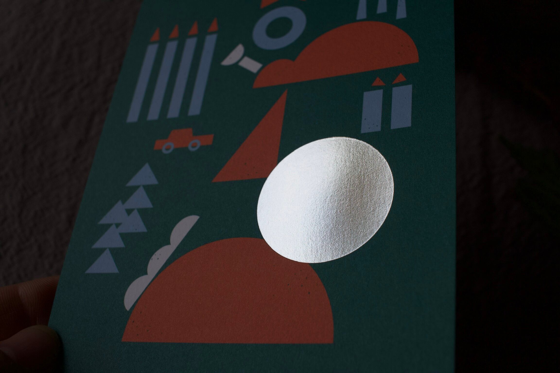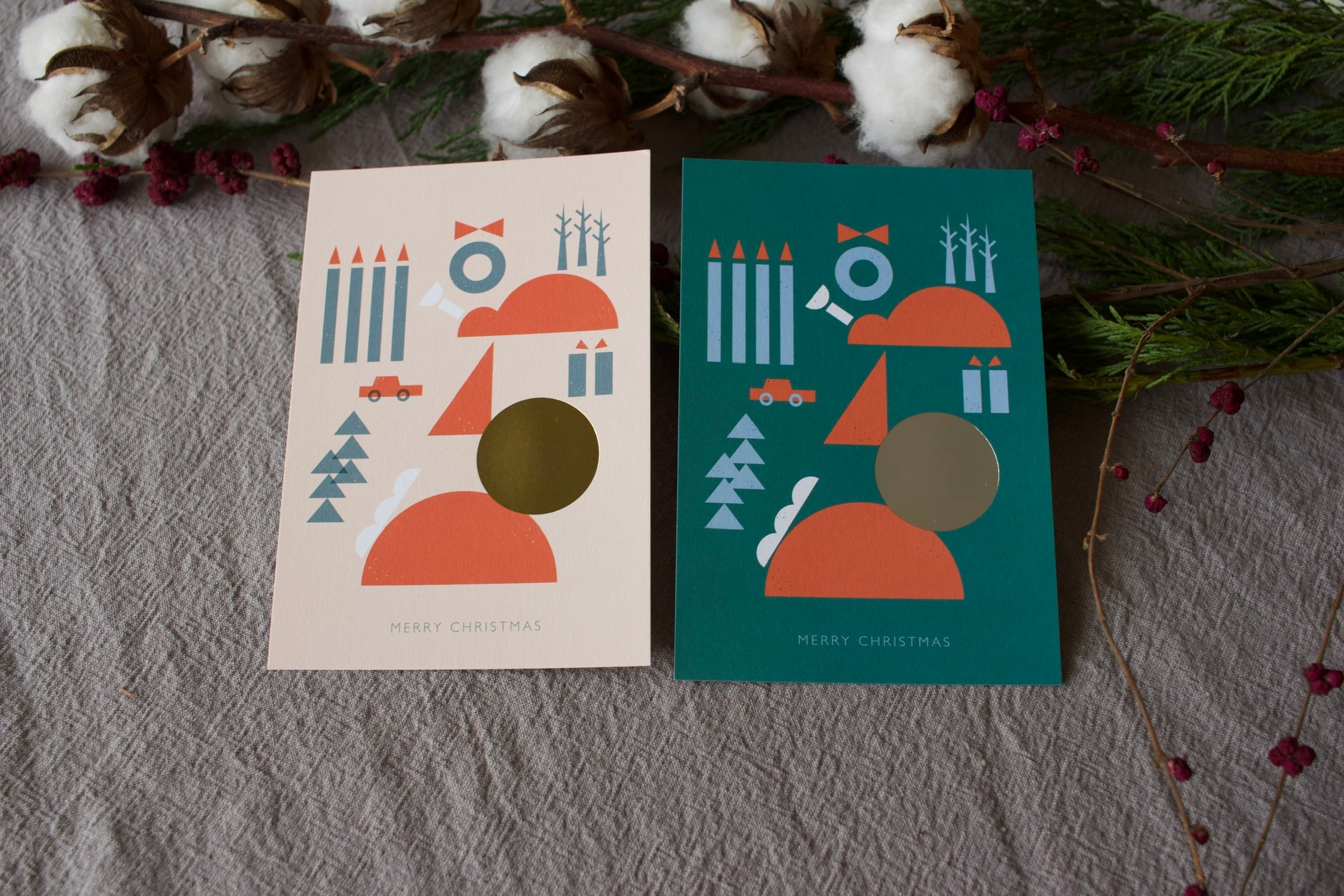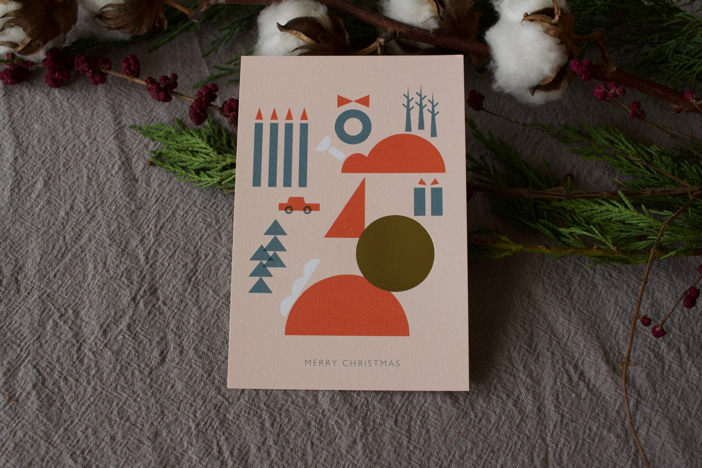丸・三角・四角の図形で描かれたクリスマスモチーフ。