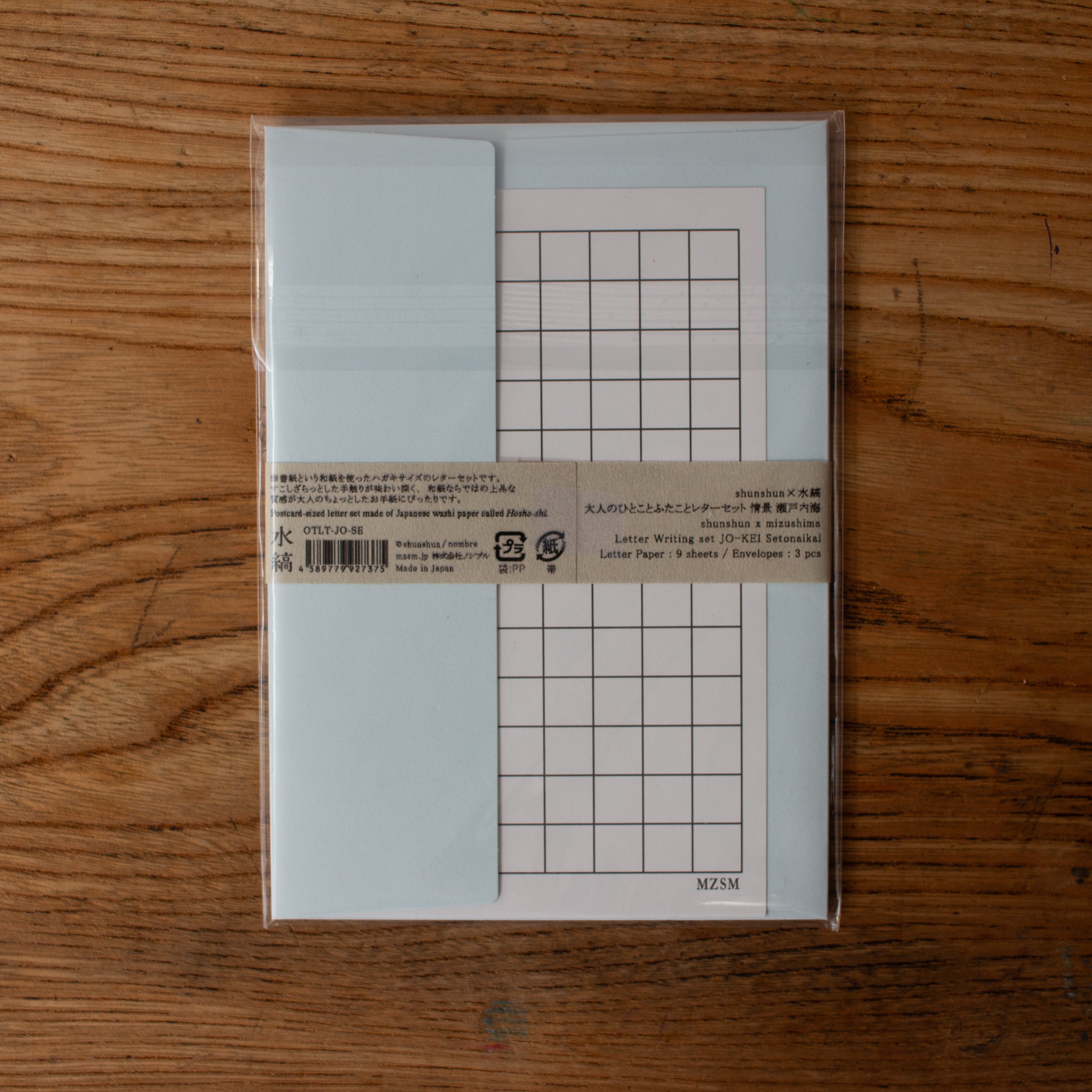 便箋 : 9枚 / 封筒 : 3枚 / 下敷き:1枚 (10mm方眼)入り