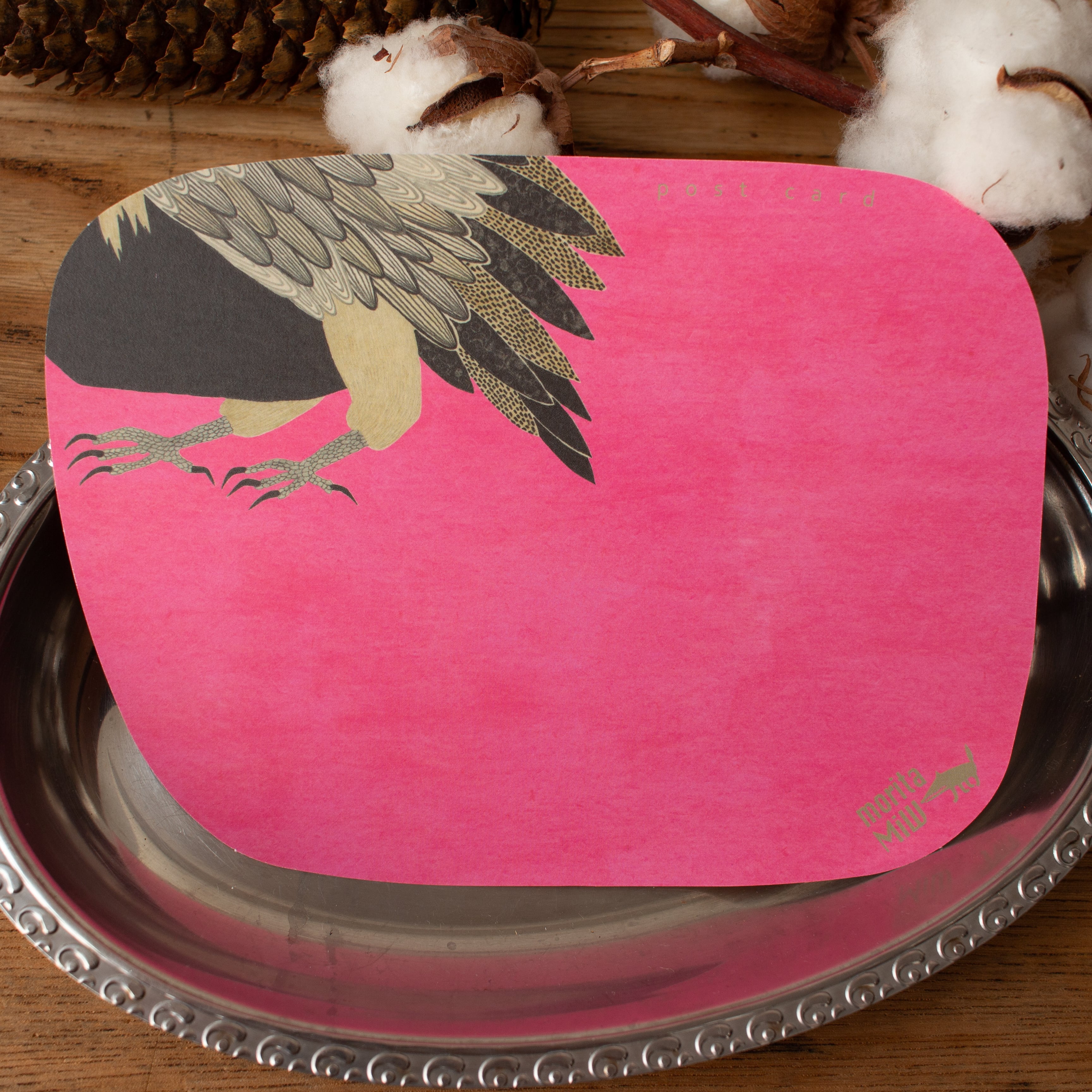 「moritaMiW」のオリジナル・ポストカードはちょっと大きめ、変型でクニュンとヘンテコな形です。見たことないようなMiWさんの不思議な世界が広がります。切手(定形外郵便になります)を貼って出してもいただけますが、表面、裏面ともに絵があるのでミニポスターとして飾っていただいても楽しいですよ。