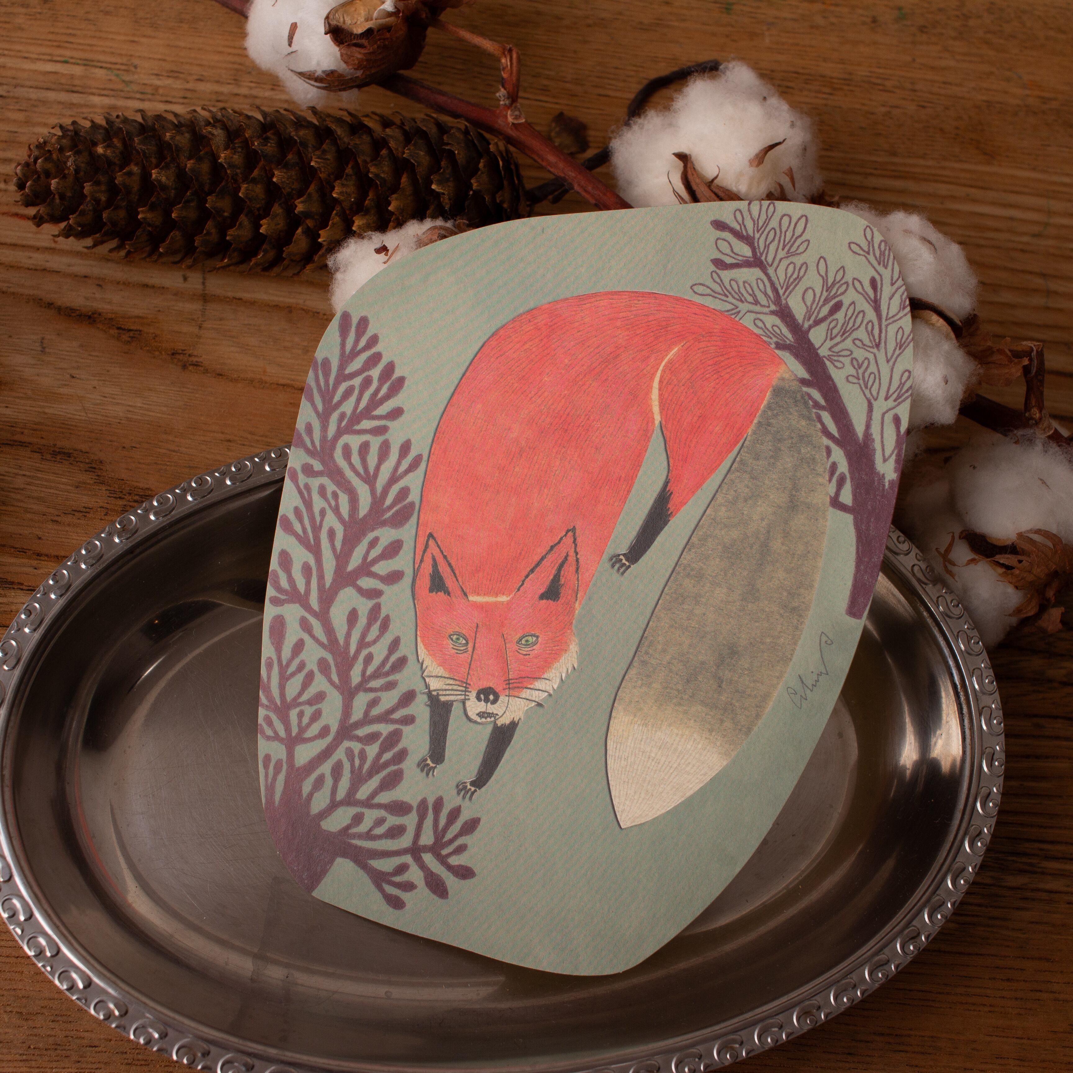 moritaMiW ポストカード 枯木の森と狐